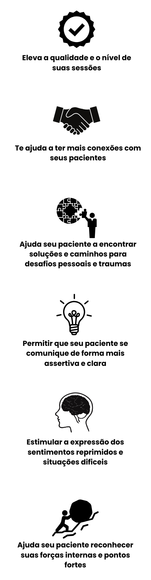 O material é ideal para psicólogos, terapeutas, psicanalistas e estudantes que desejam aprofundar suas sessões, engajar pacientes resistentes, economizar tempo na preparação e conduzir atendimentos mais eficazes